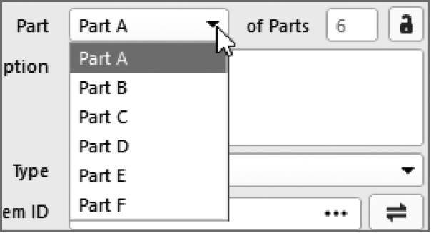 ● Part of Parts:对于有多个相同的子元器件组成的元器件,由于组成部分一般相同,如Texas Instruments(德州仪器)SN7404N具有6个相同的子元器件,一般以A、B、C、D、E和F来表示,此时可以通过对应的选项来设定,如图2-45所示。