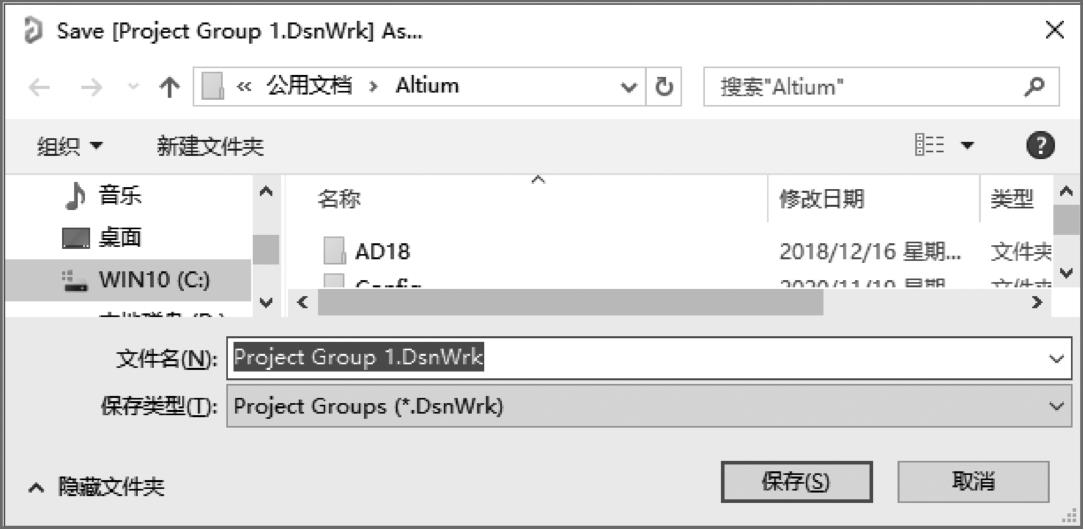 图2-4 “Save[Project Group 1.DsnWrk]As”对话框