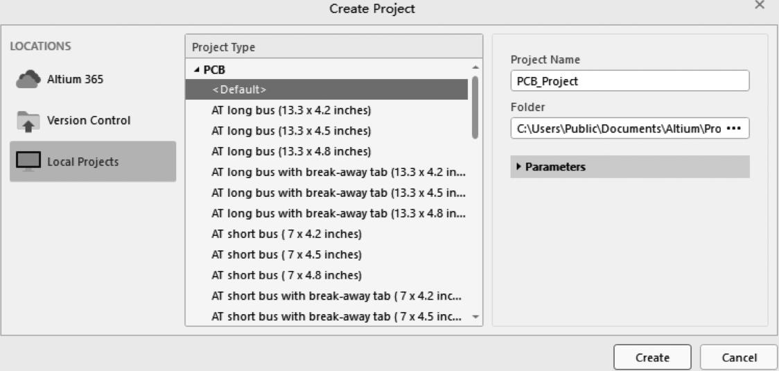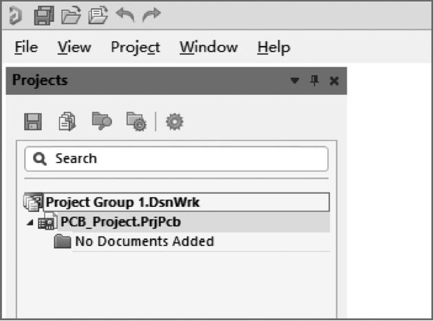 2)单击“Creat”按钮,新建一个默认名称为“PCB_Project.PrjPcb”的空白PCB项目,如图2-6所示。