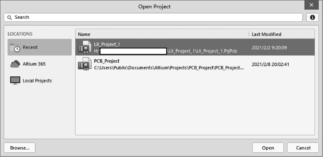 Altium Designer允许用户在设计工作区下,添加已存在的项目文件,步骤如下。