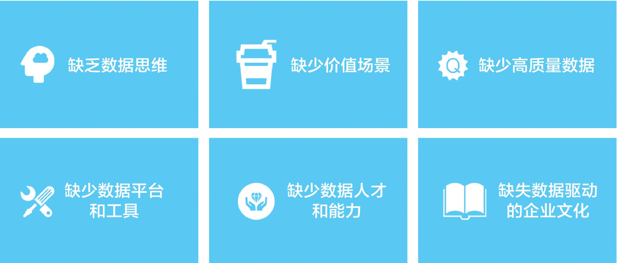 面对海量的数据源、高速变化的业务需求、陈旧的遗留系统架构,企业利用数据时存在如图2-1所示的六大挑战。
