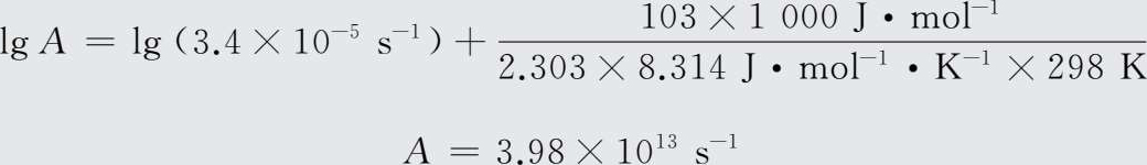 将T =298 K,k =3.4×10- 5 s -1 ,E a =103 kJ/mol代入式中