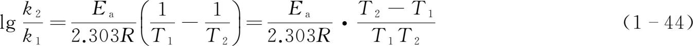 对于某反应,若已知其在温度T 1 时的速率常数k 1 ,在温度T 2 时的速率常数k 2 ,可由式(1-44),求得此反应在任一温度下的速率常数k。