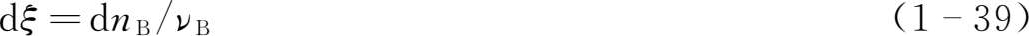 式中,B代表反应中任一物质的化学式;ν B 为物质的化学计量数,为无量纲的量,对于反应物,其值为负,对于产物,其值为正;n B (x)和n B (0)分别表示反应进度为x和反应进度为零(即反应未开始)时反应中物质B的物质的量。对同一反应,如果书写方法不同,则物质B的化学计量数ν B 不同,其反应进度也就不同,所以,当涉及反应进度量ξ时,反应方程式应予以指明。用反应进度ξ来表示反应速率,则ν可定义为单位体积内反应进度随时间的变化率,即