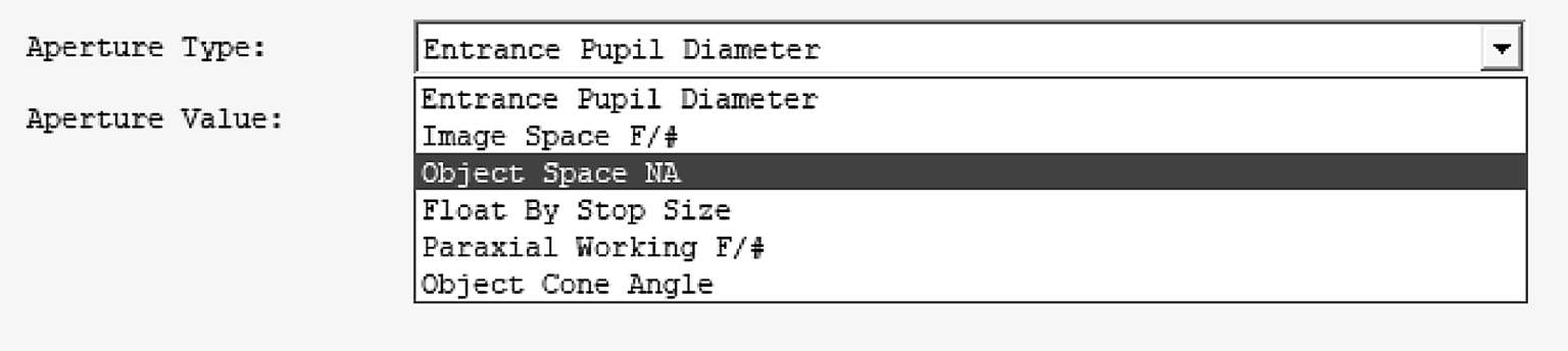 物方数值孔径OBNA可以用来控制物方物点的张角。CAXCAD系统孔径的设置中有这个选项(图1-33):