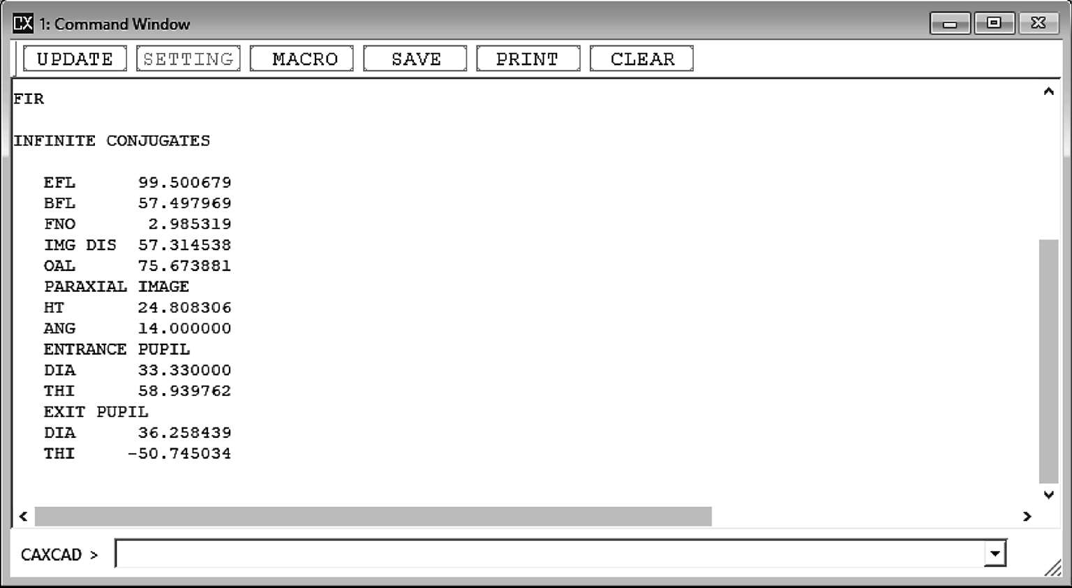 如果在命令窗口中,输入FIR,窗口将会快速展示重要的一阶光学数据(图1-5):