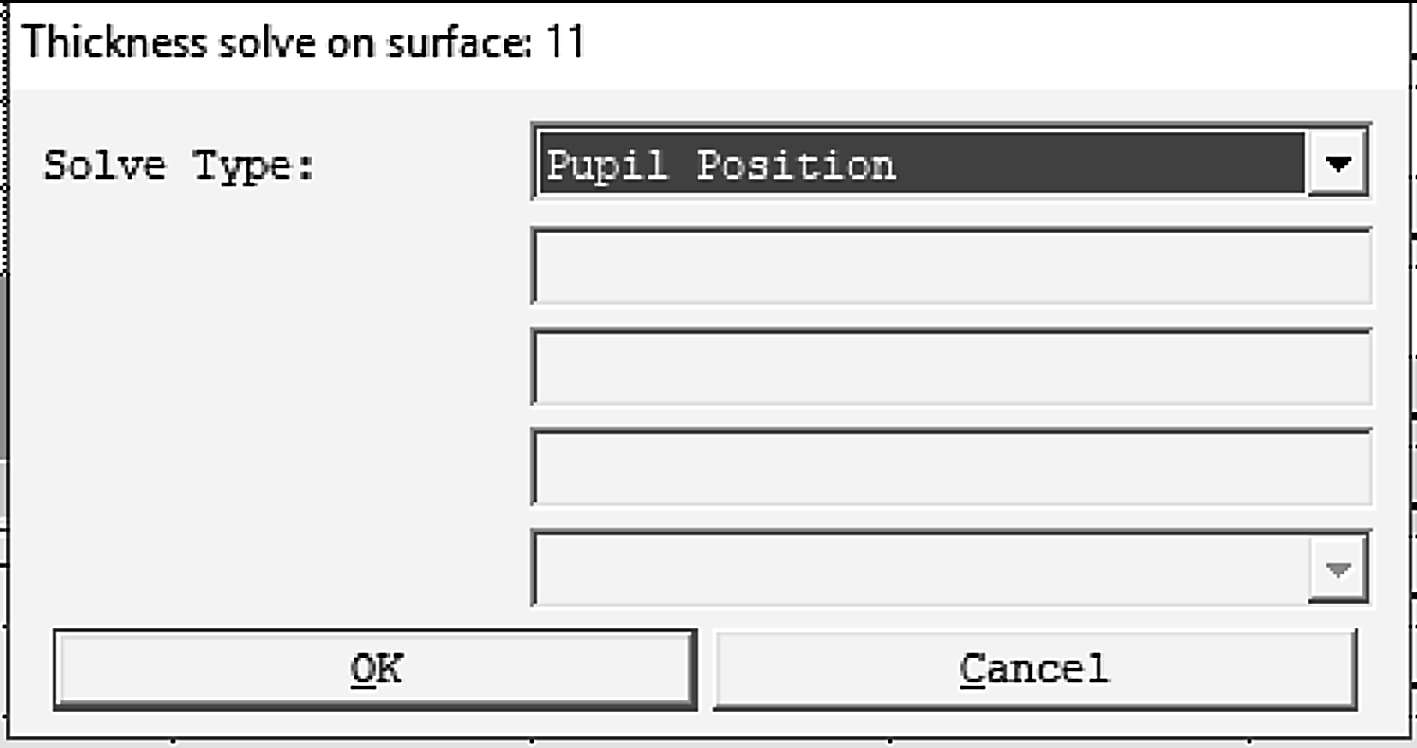 另外还有一个更快捷的方法——厚度求解,如图1-24所示。将像距的厚度57.314 538进行求解计算,求解算法基于光瞳位置。