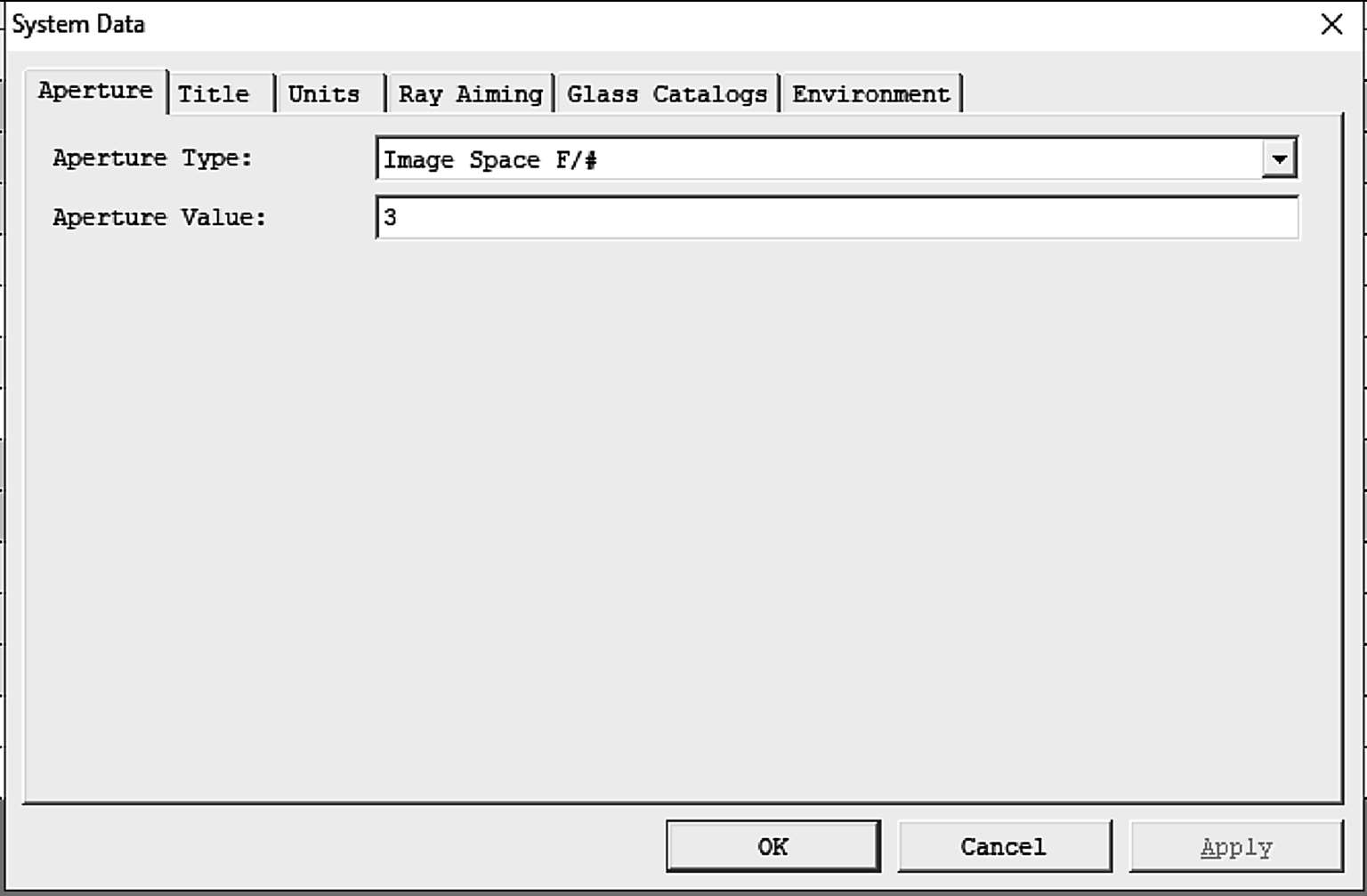 在系统参数设置中,孔径类型可以直接指定像空间F/#如图1-31所示: