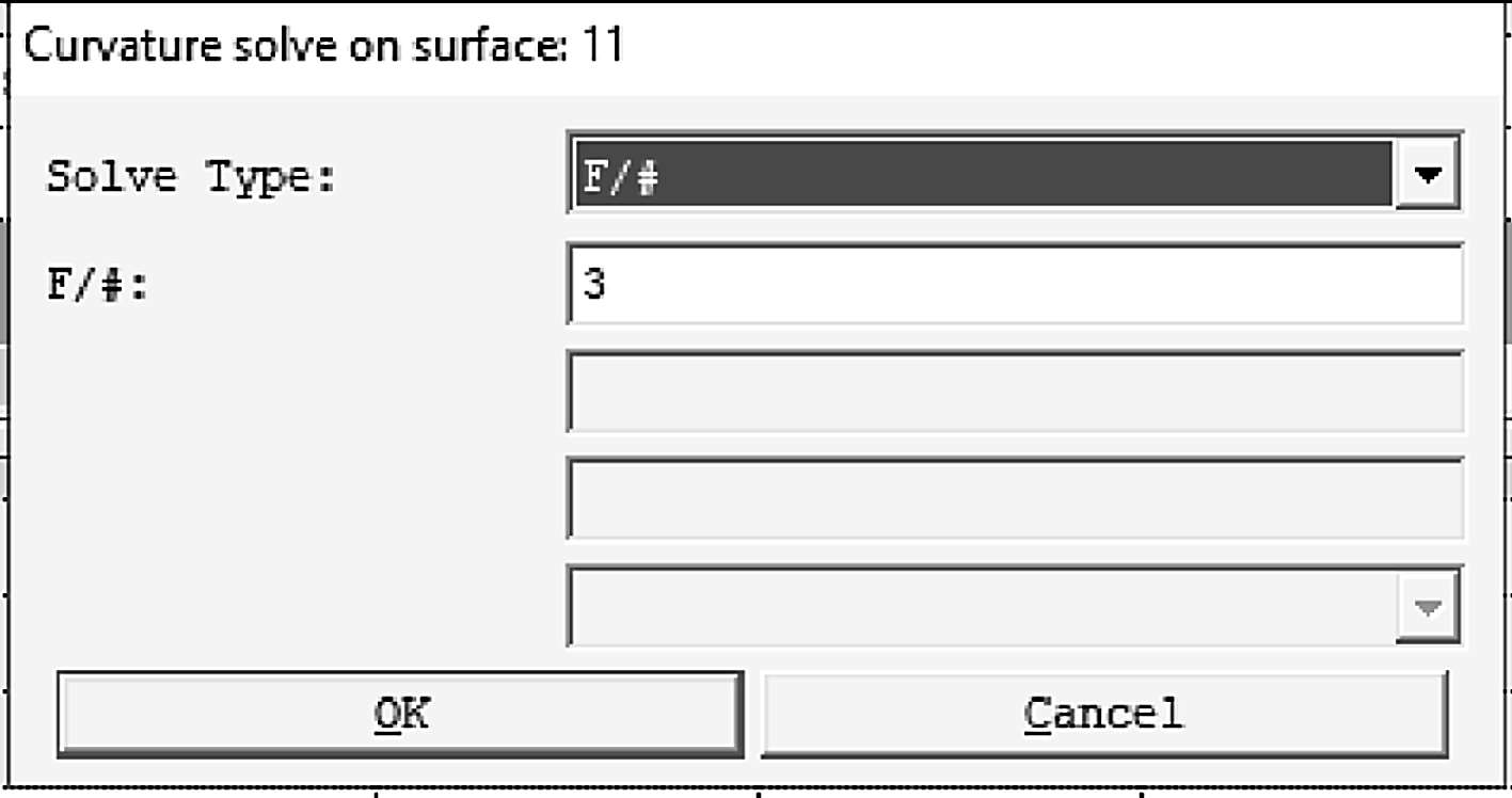 其中,使用最多的还是利用最后镜头面上的曲率求解(图1-32),这种方法非常方便,而且配合入瞳直径的设置,控制了镜头的有效焦距。这样的好处是评价函数中少了一个操作数,从而可以将优化的更多权重分配给成像质量操作数。