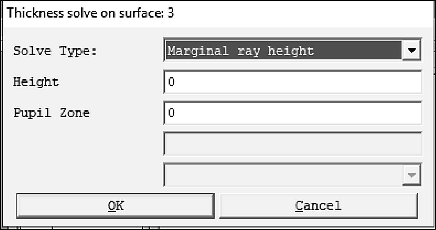 另外还有一个更快捷的方法——厚度求解,如图1-24所示。将像距的厚度57.314 538进行求解计算,求解算法基于光瞳位置。