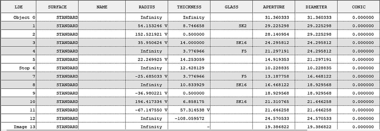 有关近轴光学定义,接下来将结合实例和软件来进行讲解,在本书中,通常会使用常用的库克三片式镜头或双高斯镜头作为实例文件。