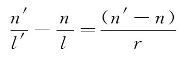其中l和l'表示物距和像距,n和n'表示物像空间折射率,r为球面曲率半径。