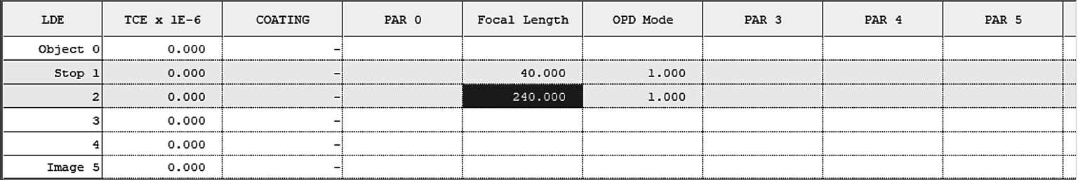 将第二理想透镜焦距设定为240(图1-38):