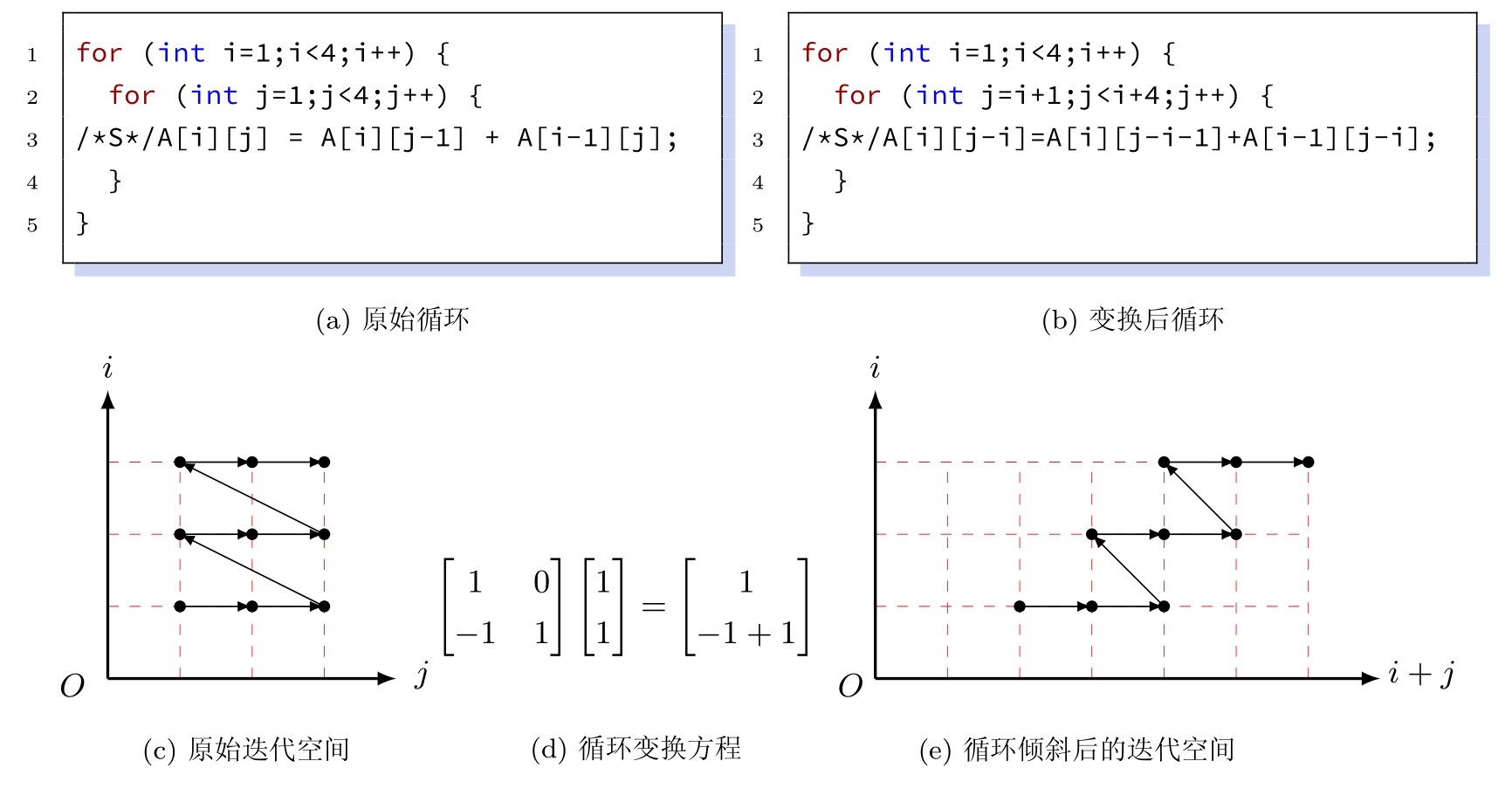 (3)循环倾斜(loop skewing):对原始循环的迭代空间进行坐标变换。