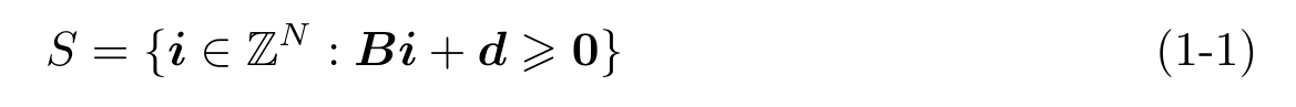 对于经过前述等价变换后的 N 重循环,由循环迭代变量和循环上下界构成的线性不等式组构成整个 N 维迭代空间的约束集合。在多面体优化中,为了方便利用整数线性规划的数学模型实现相应的优化,通常将约束写成以下形式: