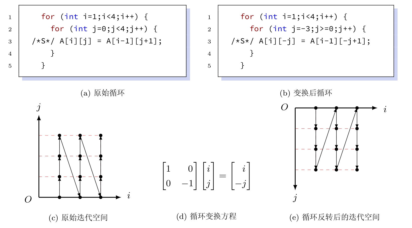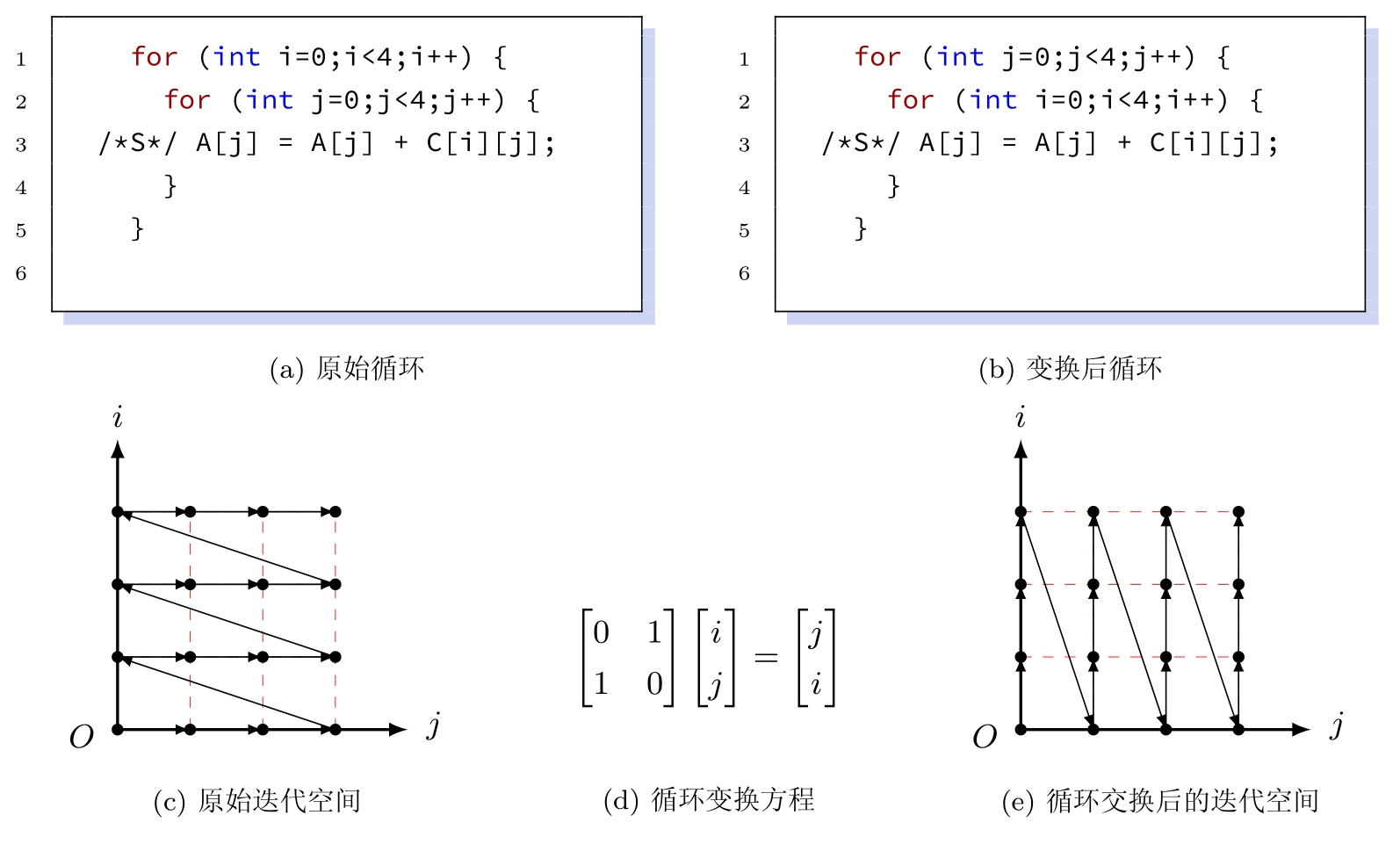 对于任意两个循环迭代,只要在满足迭代空间约束的前提下,不存在读后写、写后读和写后写依赖,就可以以任意的顺序执行。而且编译器还可以通过对循环迭代进行重排序来大幅提高数据局部性,也可以将无依赖的语句映射到不同的处理单元并行执行。或者通过合理安排不同循环迭代的执行顺序,来实现并行性和数据局部性的折中,从而在特定的处理器上高效地执行程序