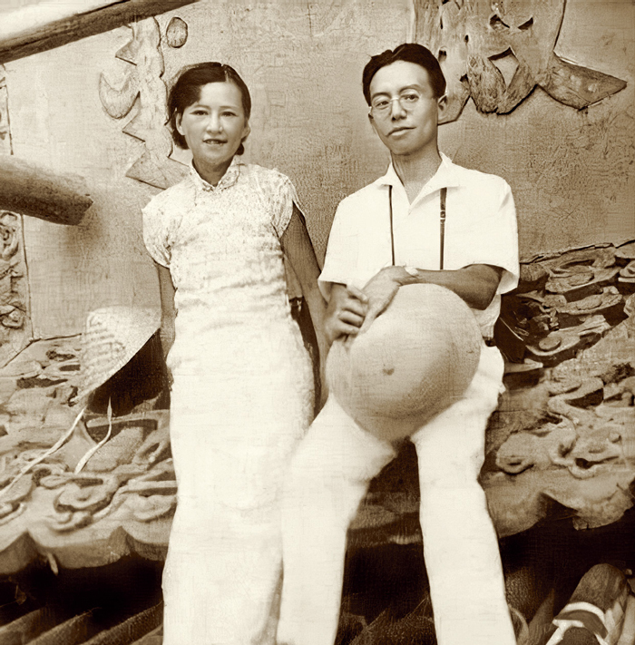 1935年祈年殿大修,梁思成和林徽因作为技术顾问参与,两人在祈年殿上的合影
