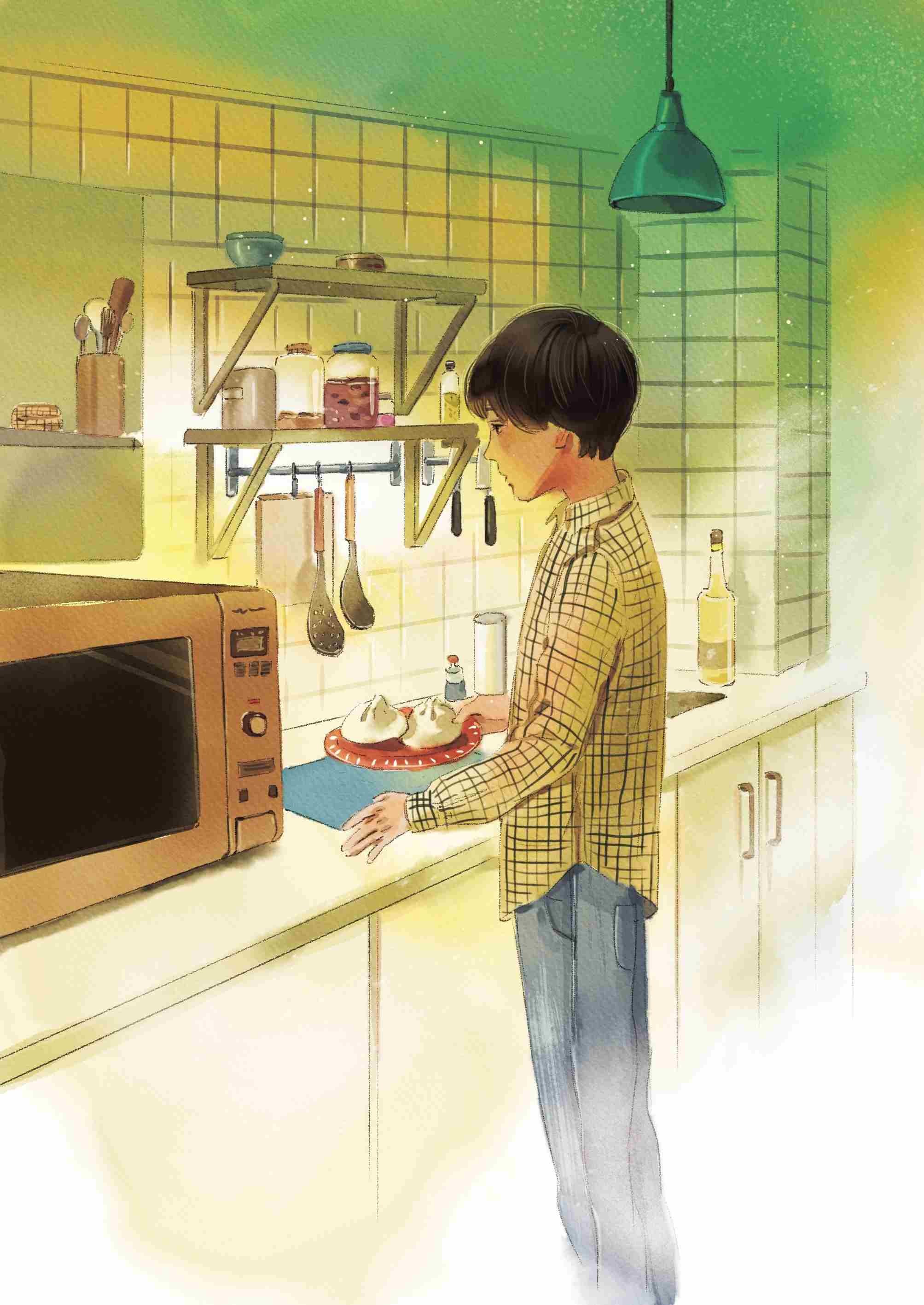 一切都无懈可击,像瑞士钟表一样准确,精细。有一次弟弟的好奇心发作,蒸包子的时候让微波炉多转了半分钟,结果包子的面皮板结起来,收缩成了一团牛筋一样坚硬的东西。又有一次烤酥饼,弟弟自作主张削减了一分钟的烘烤时间,他惊讶地发现,小酥饼拿出微波炉的时候,对着火的一面虽然已经微烫,背着火的一面却还是凉的,连表面凝固的猪油都没有解冻。