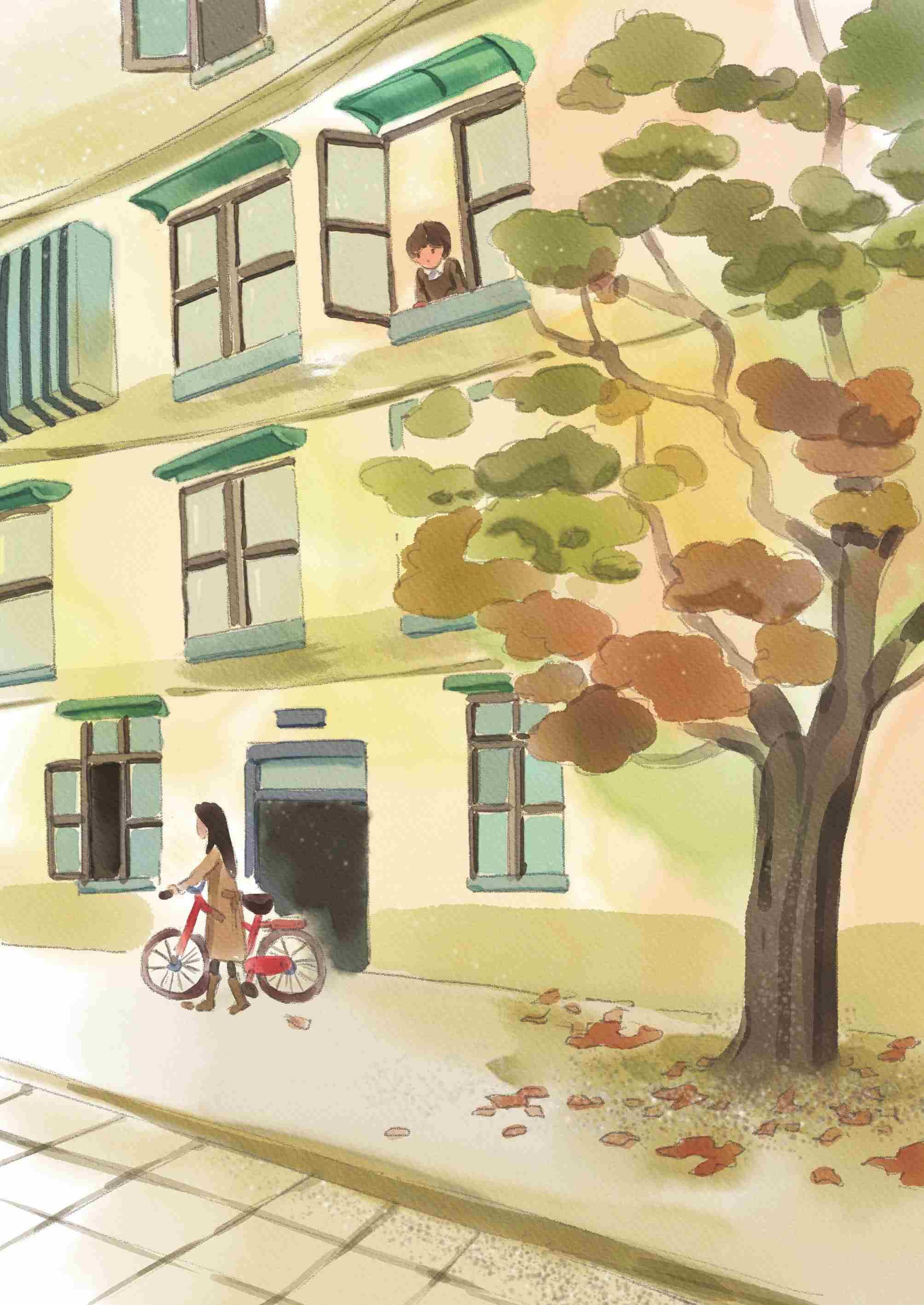 弟弟倾听舒一眉下楼的脚步声。听到差不多的当儿,他会飞奔到窗口,扒着窗台,伸头看舒一眉从楼门洞出来,骑上一辆女式自行车,迅速消失的身影。