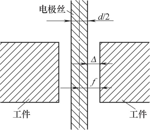 放电间隙的大小与加工条件参数有关,可以通过查表(机床生产厂家提供的加工条件参数表)再计算得到。一般快速走丝线切割加工时,取单边放电间隙 Δ =0.01~0.02mm。