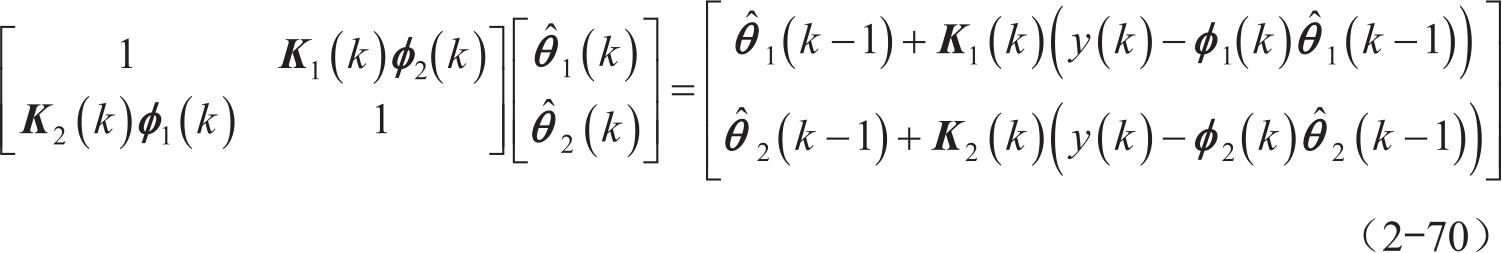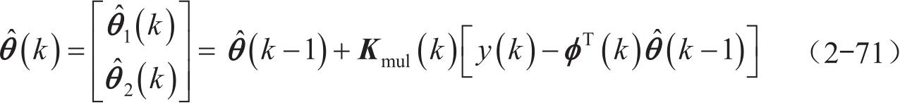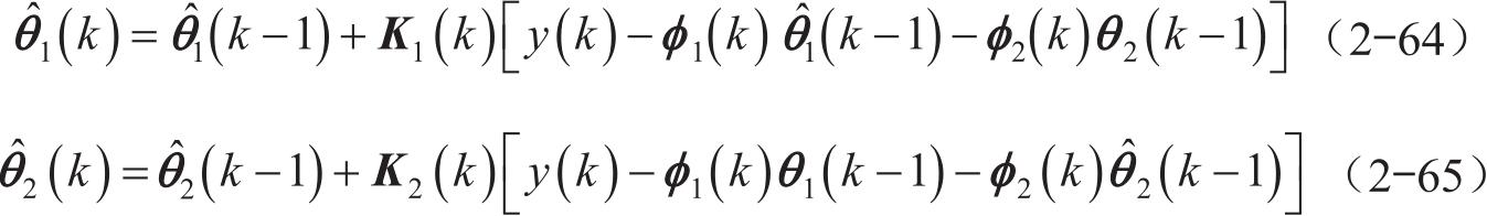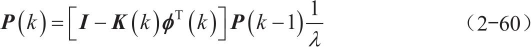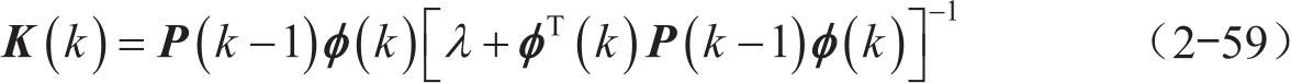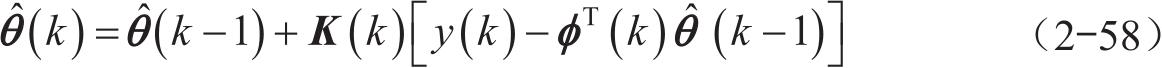 对式(2-70)进行求解并整理,可以得到递推的最小二乘法的基本形式如下: