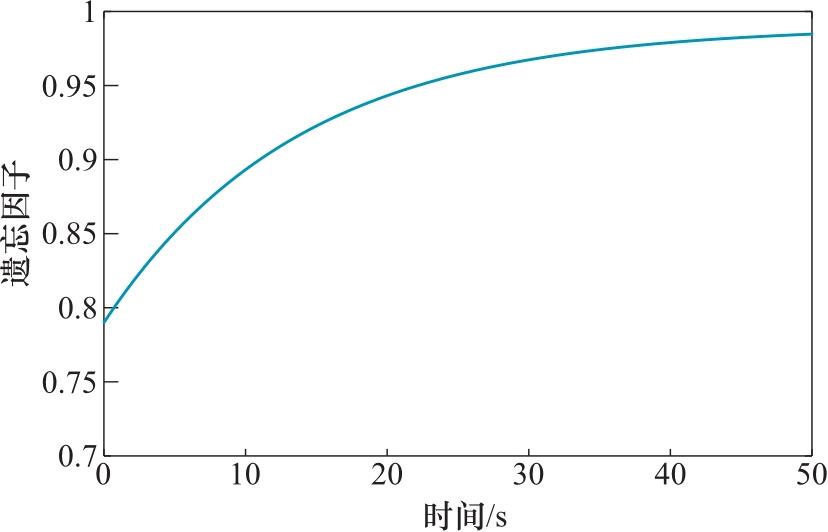 因此,相关学者提出了一种变化的遗忘因子取值方法,采用基本函数使得遗忘因子取值逐渐增大,最终趋近于零。公式如下: