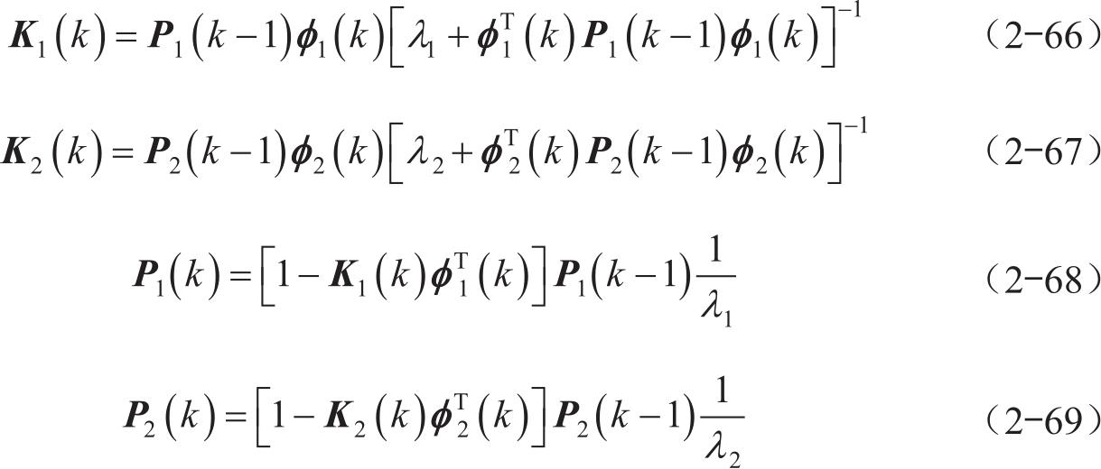 式中, λ 1 为第一个参数的遗忘因子; λ 2 为第二个参数的遗忘因子。