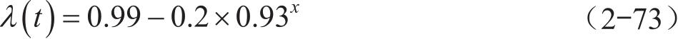 该遗忘因子随时间变化曲线如图2-9所示。本书中整车质量这个参数符合上述特征,将采用式(2-73)表示的遗忘因子作为第一个遗忘因子 λ 1 ,第二个参数坡度采用固定遗忘因子 λ 2 ,即采用带可变多遗忘因子的递推最小二乘法对整车质量及坡度进行联合估算。