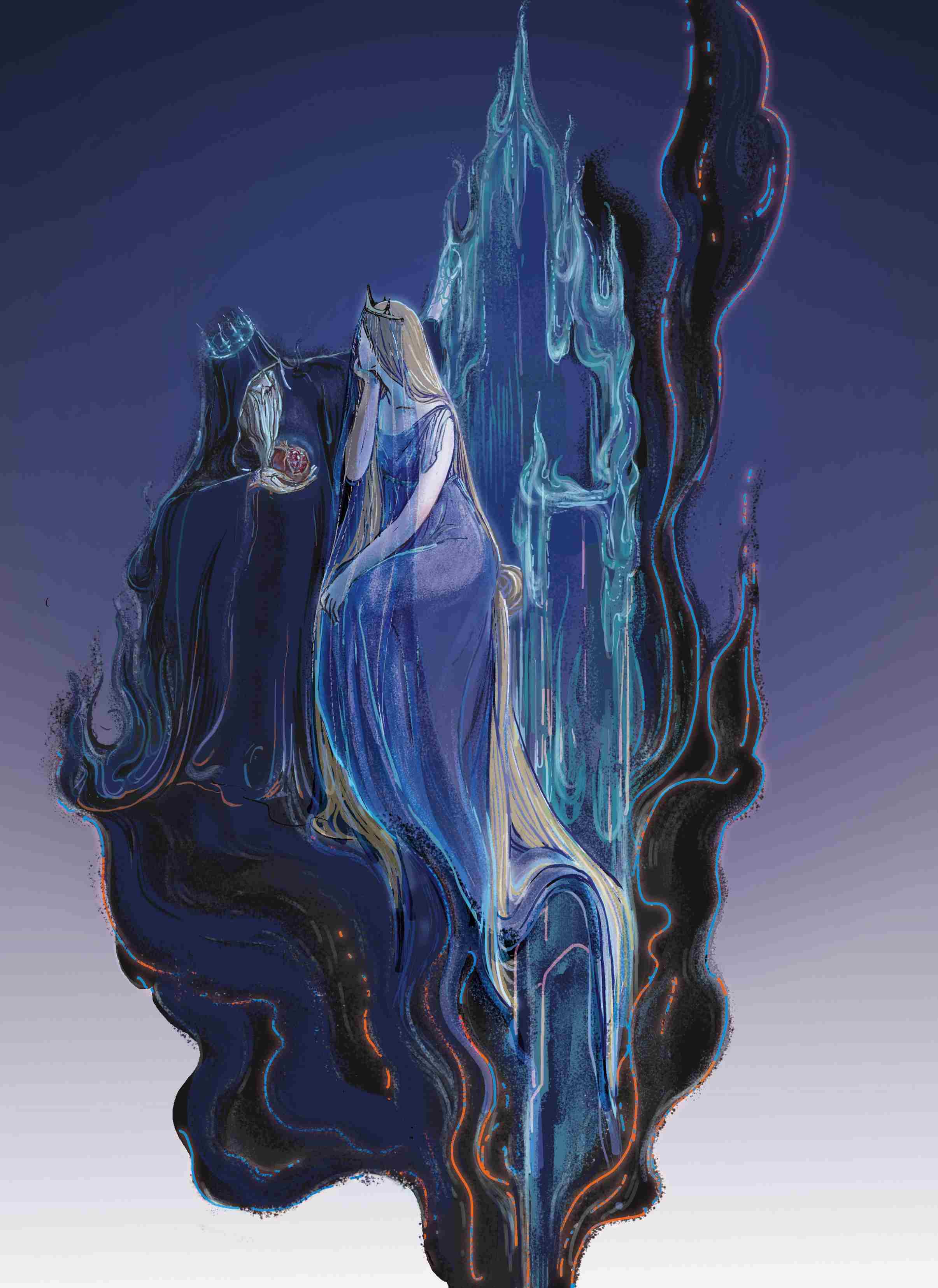被掳劫的珀耳塞福涅被哈得斯带到了他阴沉的地下宫殿,心不甘情不愿地当上了冥后。哈得斯送给她无数财富和珠宝,但这一切都丝毫不能打动和抚慰珀耳塞福涅的心,她想要的是阳光普照的大地、遍地鲜花的田野,还有她亲爱的母亲。