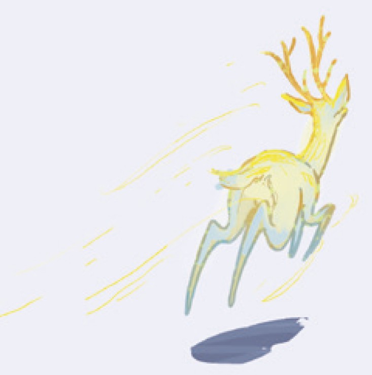 惊人的一幕出现了——被水泼洒到的青年发生了变化,他的头上长出了鹿角,头颈拉长了,耳朵变得小而尖,嘴巴突出,手脚变成了鹿蹄,四肢变成了鹿腿,身上是带斑点的毛皮,他完完全全变成了一只雄鹿。