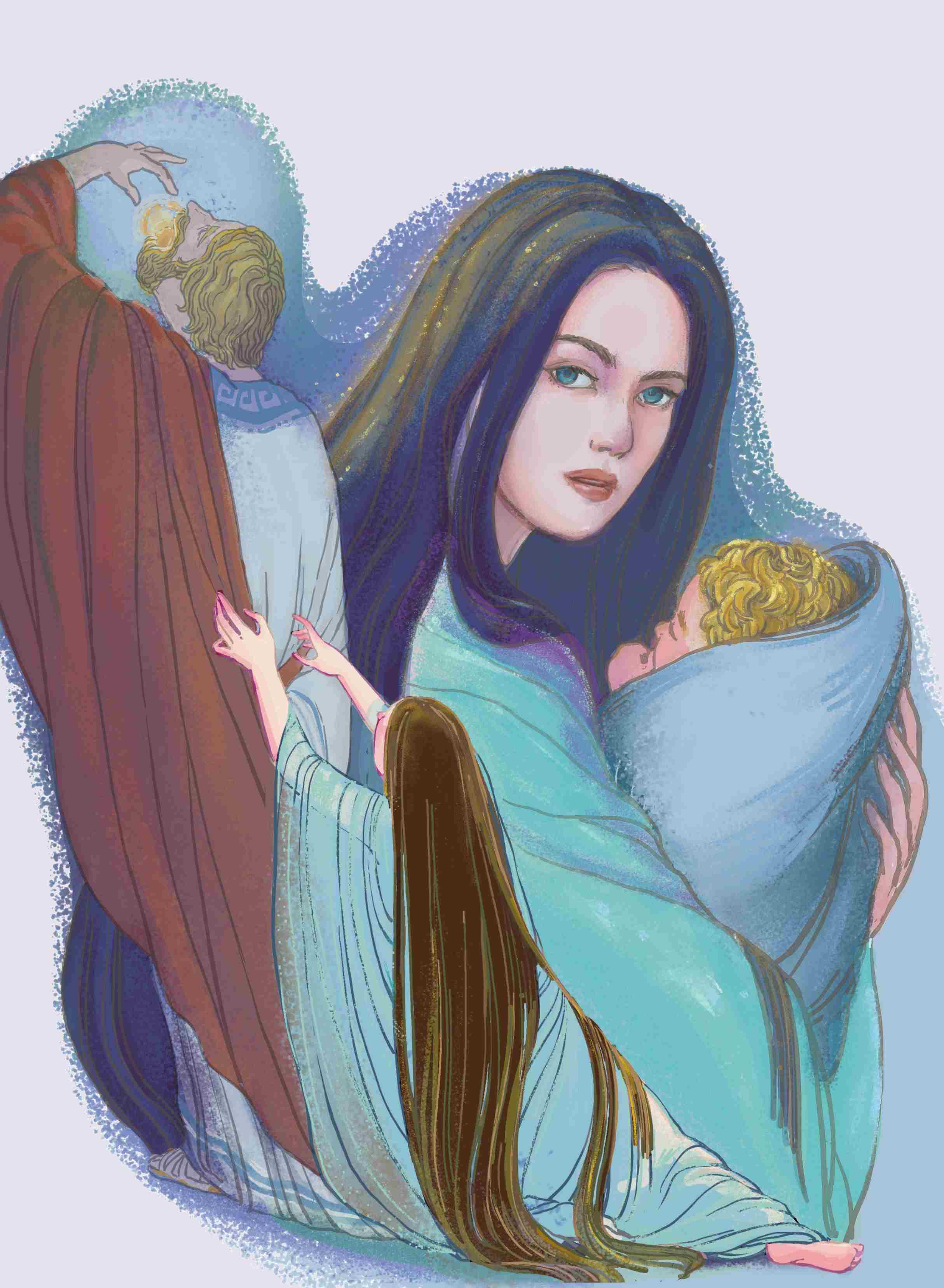 瑞亚眼含热泪哀求克洛诺斯:“我只是想多抱抱他,多跟他待一会儿,这样小小的要求都不行吗?”