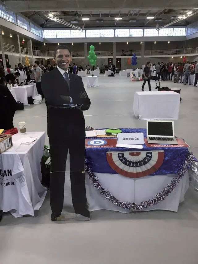 Student Club Fair上的奥巴马立牌