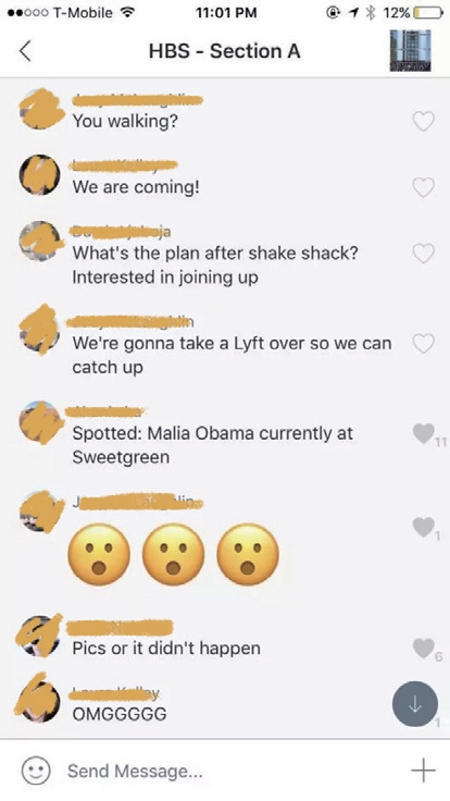 每个同学都有过人之处,很多人本科毕业于哈佛、耶鲁、斯坦福等世界名校。不少人也已经在工作中取得过骄人业绩,比如我们班就有多位来自脸书(Facebook)、谷歌(Google)、亚马逊(Amazon)的明星员工,有估值几个亿的创业公司的老板,更有二十多个曾在高盛、摩根士丹利、麦肯锡等投行、咨询公司工作过的年轻金领。这种多元的背景让大家可以更好地互相学习和激励。