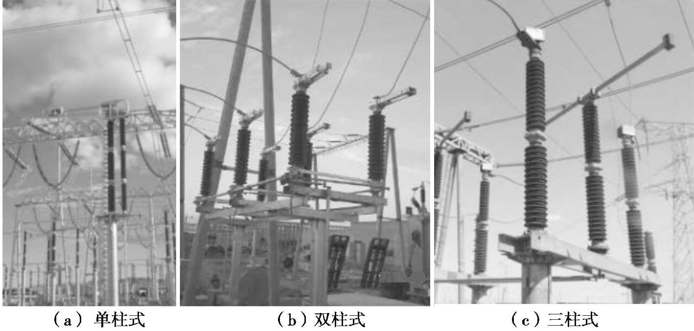 ③按每极支柱绝缘子的数目分为单柱式、双柱式和三柱式,如图 1.3 所示。
