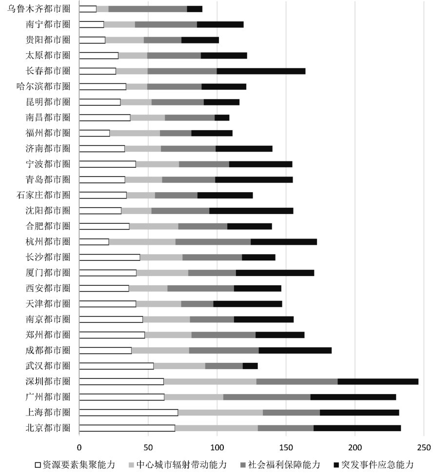 图3-3 都市圈综合发展能力指数四分项得分情况