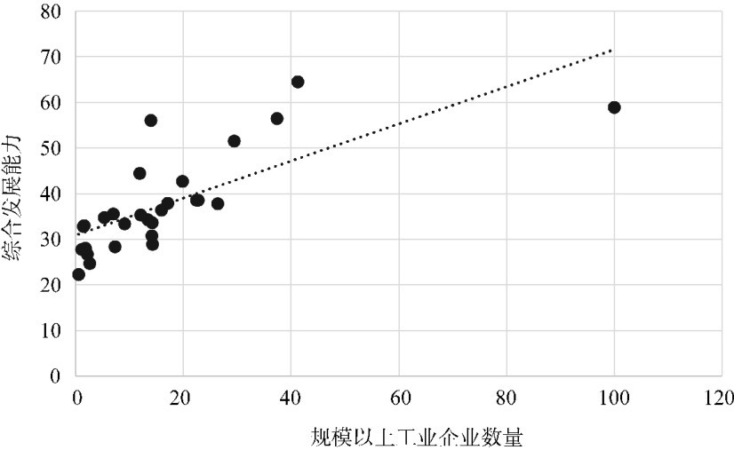 图3-12 都市圈综合发展能力与规模以上工业企业数量散点图