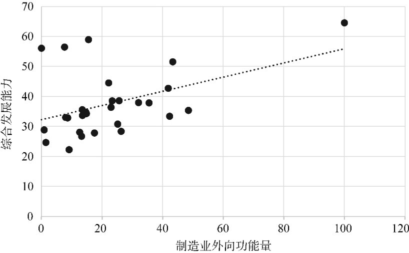图3-13 都市圈综合发展能力与制造业外向功能量散点图