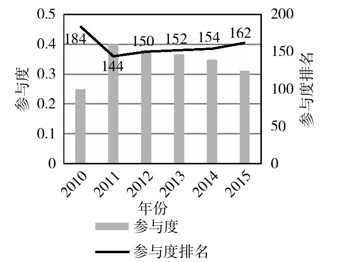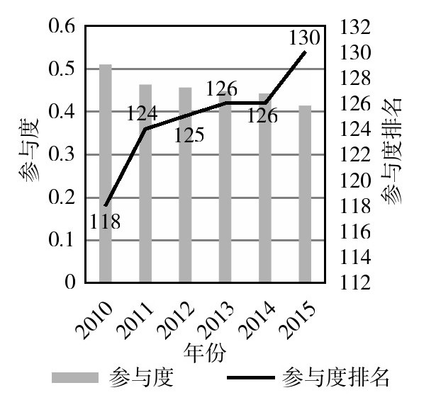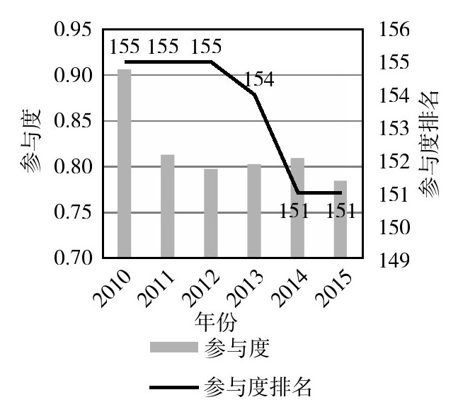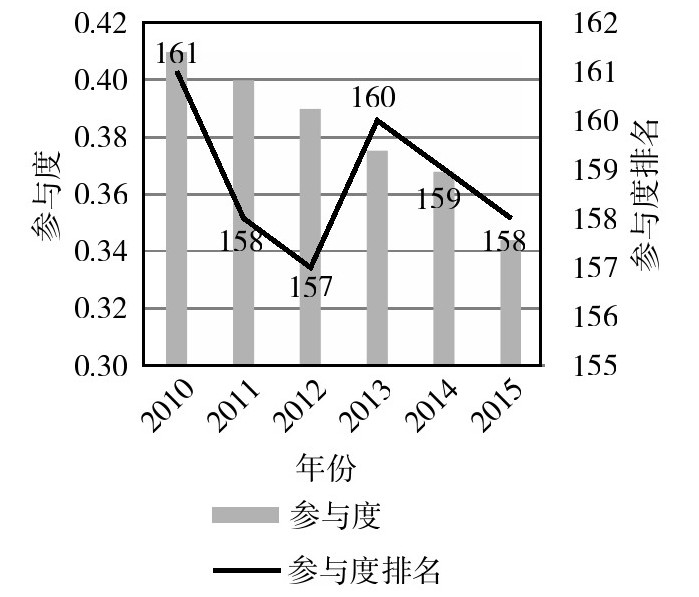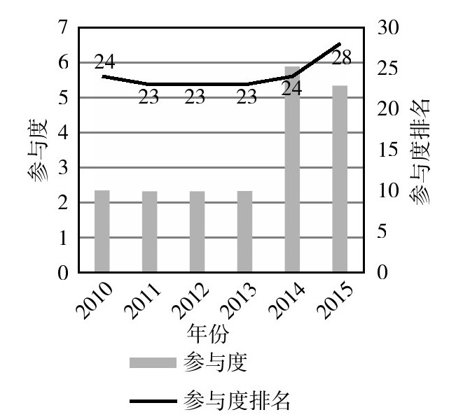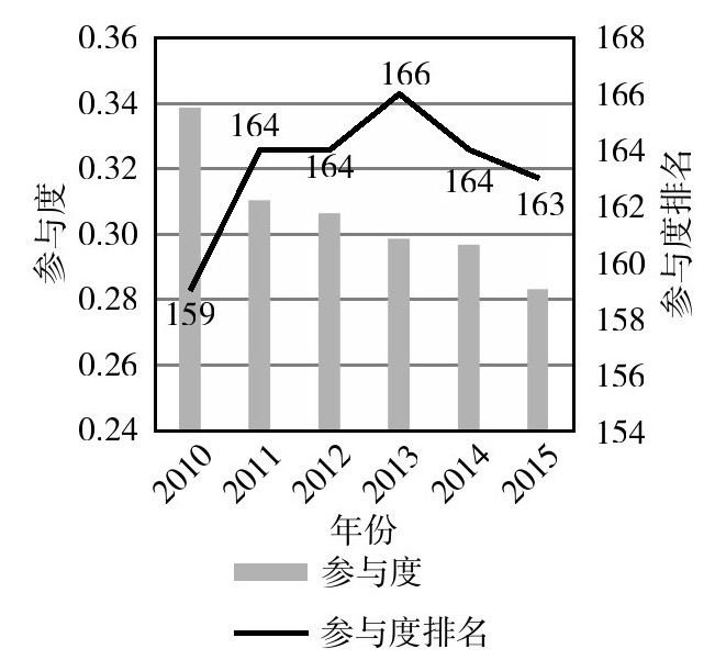 图3.46 2010—2015年中国建筑业参与度及排名变动