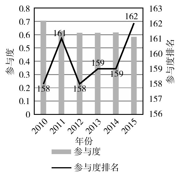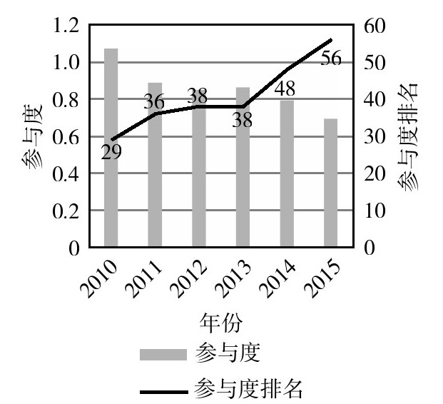 图3.48 2010—2015年中国金融业参与度及排名变动