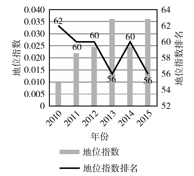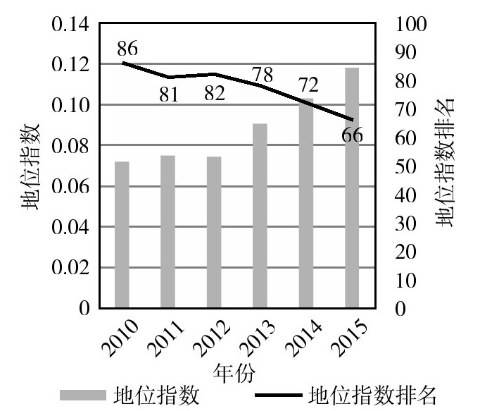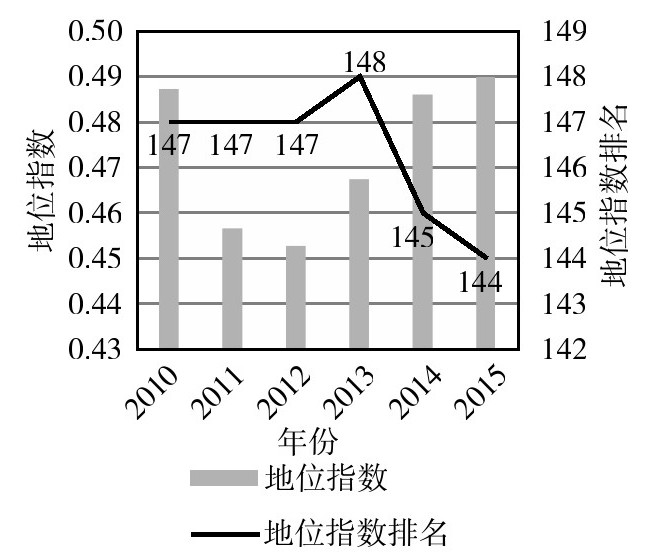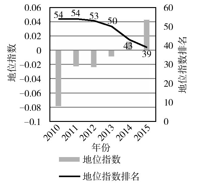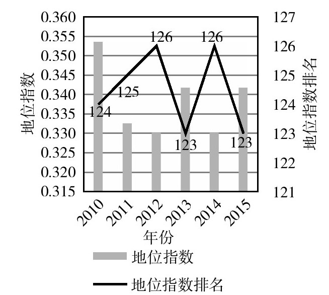 图3.45 2010—2015年中国建筑业地位指数及排名变动
