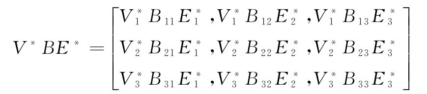我们用一个N行N列的对角矩阵E 1 *表示经济体1中N个行业的出口量,对角线是经济体1中N个行业的出口量,非对角线为0。由此我们得到3N×3N的总出口对角矩阵E*: