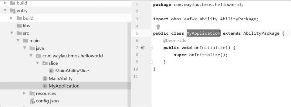从代码中可以看到,MyApplication继承自AbilityPackage。AbilityPackage是用来初始化每个HAP的基类。