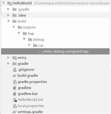 应用的build目录下有一个名为entry-debug-unsigned.hap的文件,如图4-3所示,该文件就是HarmonyOS的应用软件包。