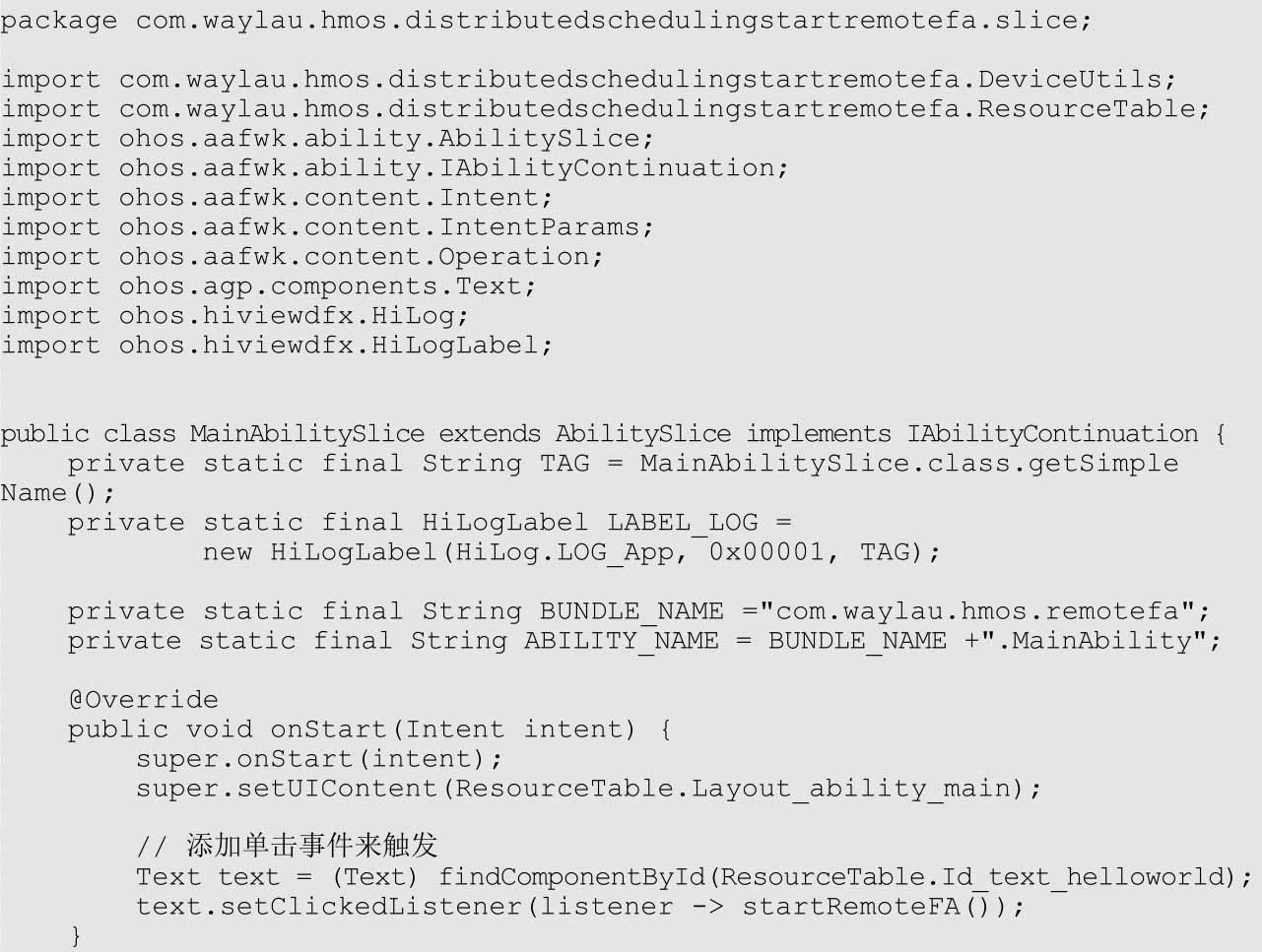 (3)在onStart()方法中的Text上增加了单击事件,用于触发startRemoteFA()方法。