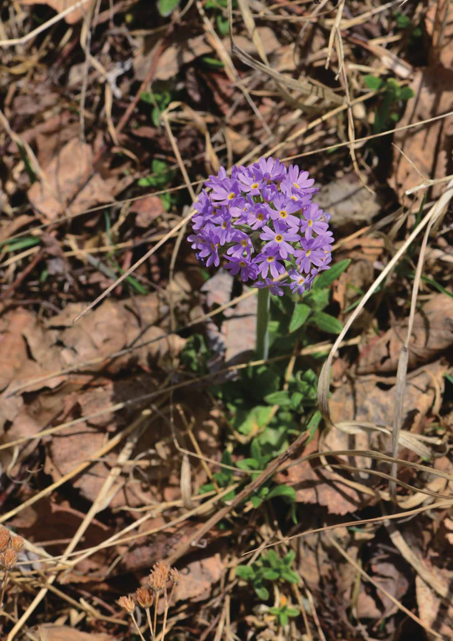 塞北滑雪场附近的箭报春。拍摄时故意没有清理周围的枯草,这样可以了解它生长的环境。2018年5月12日。