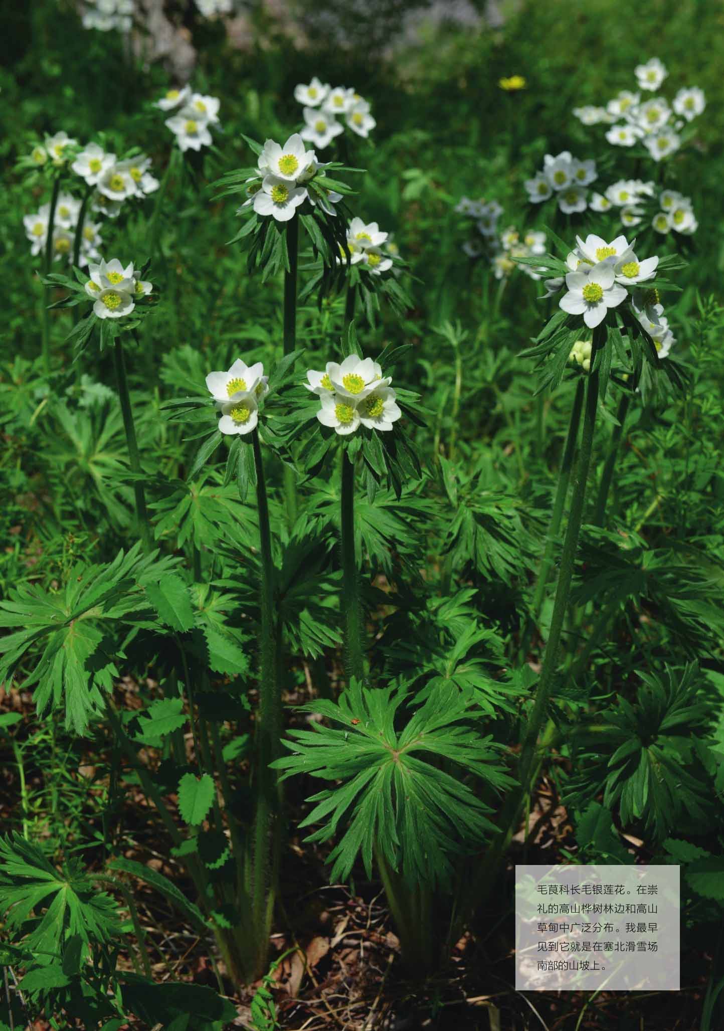 毛茛科长毛银莲花。在崇礼的高山桦树林边和高山草甸中广泛分布。我最早见到它就是在塞北滑雪场南部的山坡上。