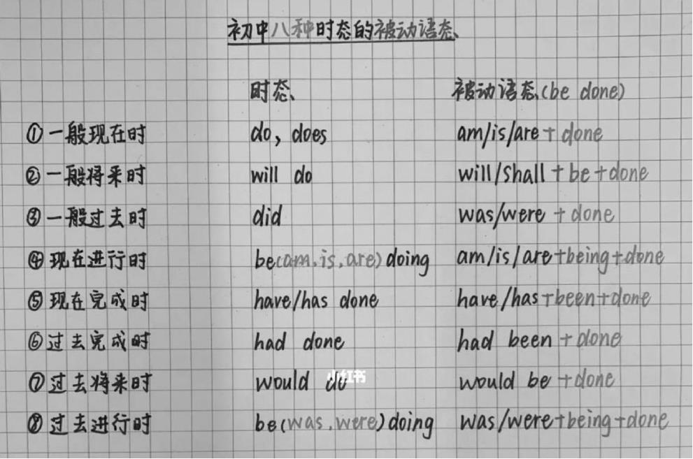 图2-16 初中八种时态的被动语态