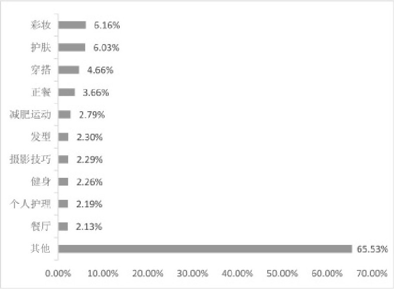 但事实上,如今的小红书早已走向了更广泛的内容生态圈,除了美妆、护肤之外,其他方面也都有涉猎,包括美食、家居、旅游、健身、读书、母婴等,可以说小红书的内容正在覆盖生活的方方面面。千瓜数据发布的《2021千瓜活跃用户画像趋势报告(小红书平台)》显示,2021年,小红书活跃用户关注的焦点正趋于多元化,如图1-3所示。