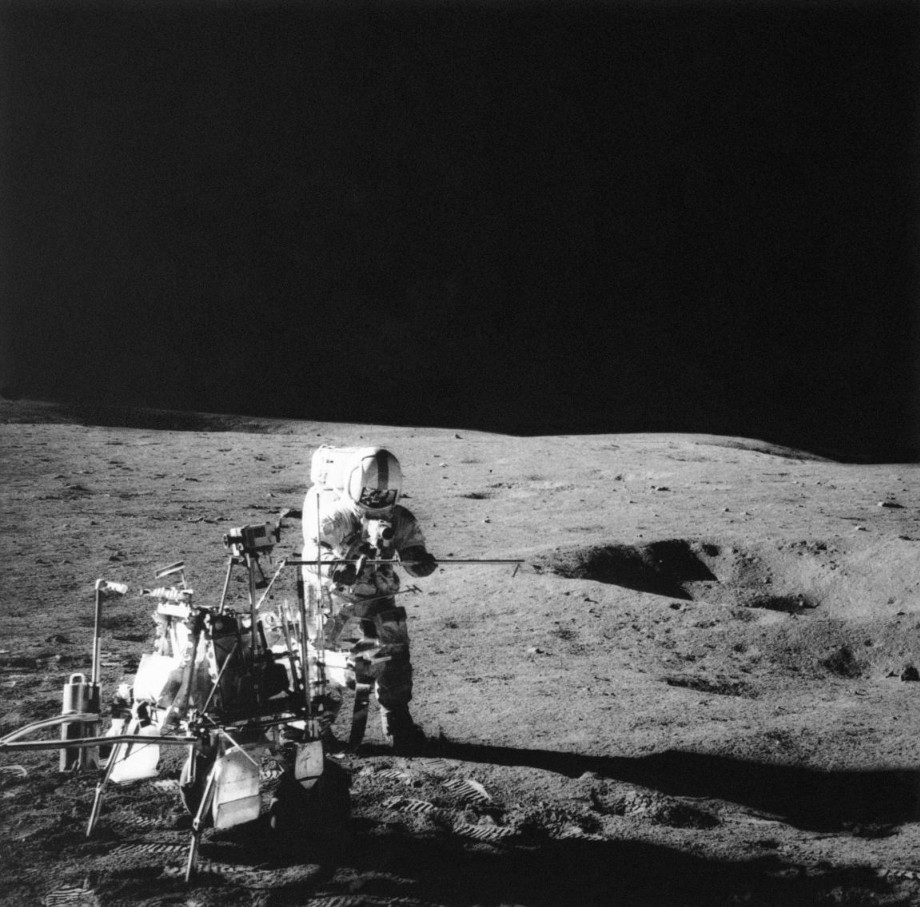 图1.9 艾伦·谢泼德在月球上组装设备 来源:NASA/JSC