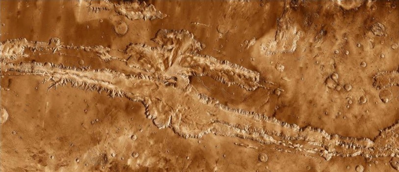 水手谷肯定是最引人注目的火星胜地之一,因为它是太阳系内最大的峡谷,长度与天津到拉萨的距离相当,超过了4500千米,宽度达到600千米,而深度是科罗拉多大峡谷的4倍,大约8千米,是当之无愧的峡谷之王。它历史悠久,大约35亿年前就开始逐步形成,直到现在,仍有些地方会出现小型的山崩现象,让人称奇。